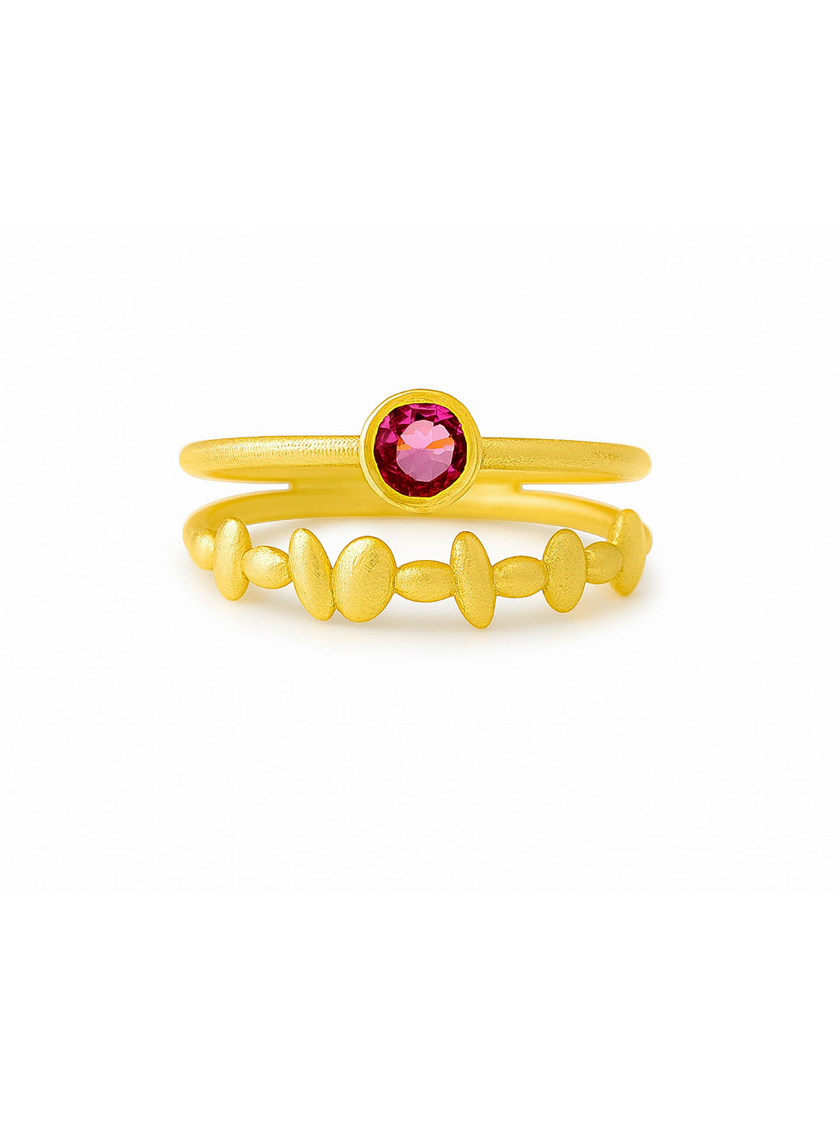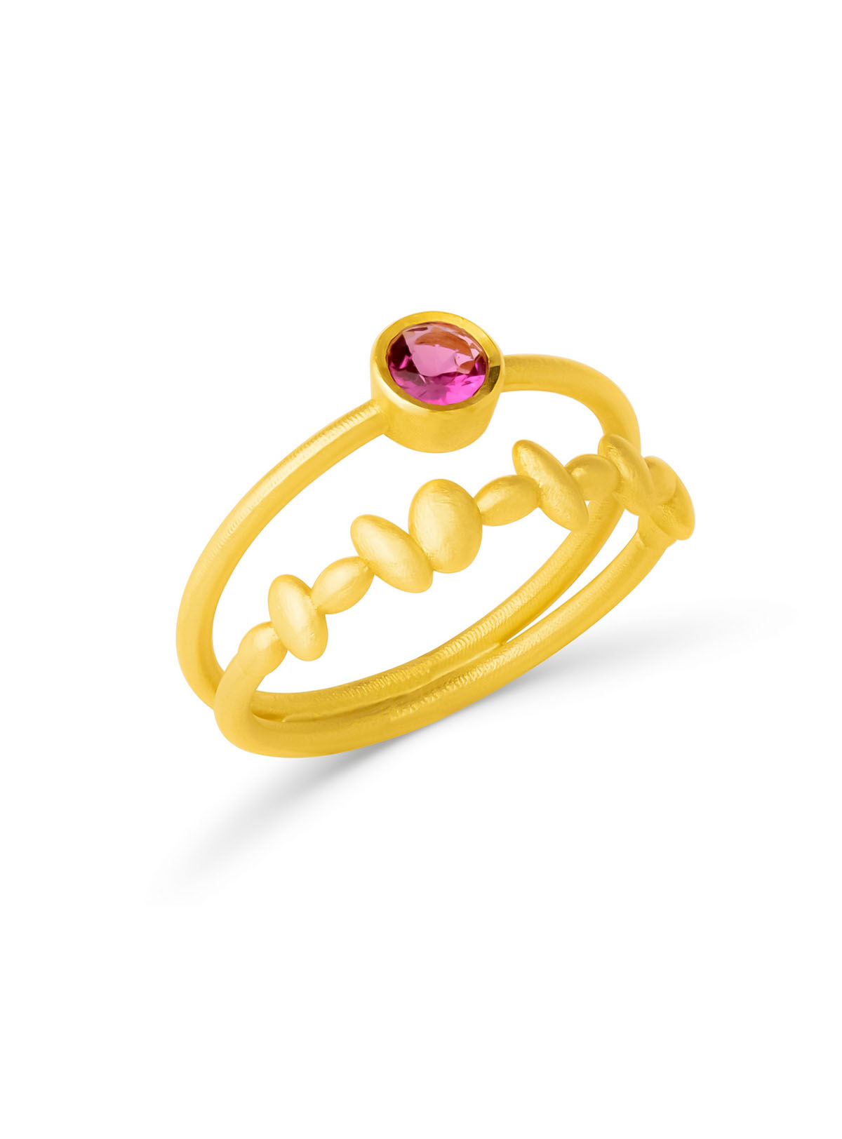 Μια καθημερινή ομορφιά! Κατασκευασμένο από κίτρινο χρυσό 18 καρατίων, αυτό το δαχτυλίδι είναι διακοσμημένο με φυσική στρογγυλή ροζ τουρμαλίνη. Σχεδιασμένο με χαμηλό προφίλ είναι τέλεια προσαρμοσμένο για κάθε περίσταση και όλη την ημέρα. Το έντονο κίτρινο χρώμα και το ματ φινίρισμα το κάνουν μοναδικό και ξεχωριστό. Φορέστε αυτό το δαχτυλίδι για να ολοκληρώσετε την εμφάνιση και να προσθέσετε μια μικρή πινελιά λάμψης στη μέρα σας.