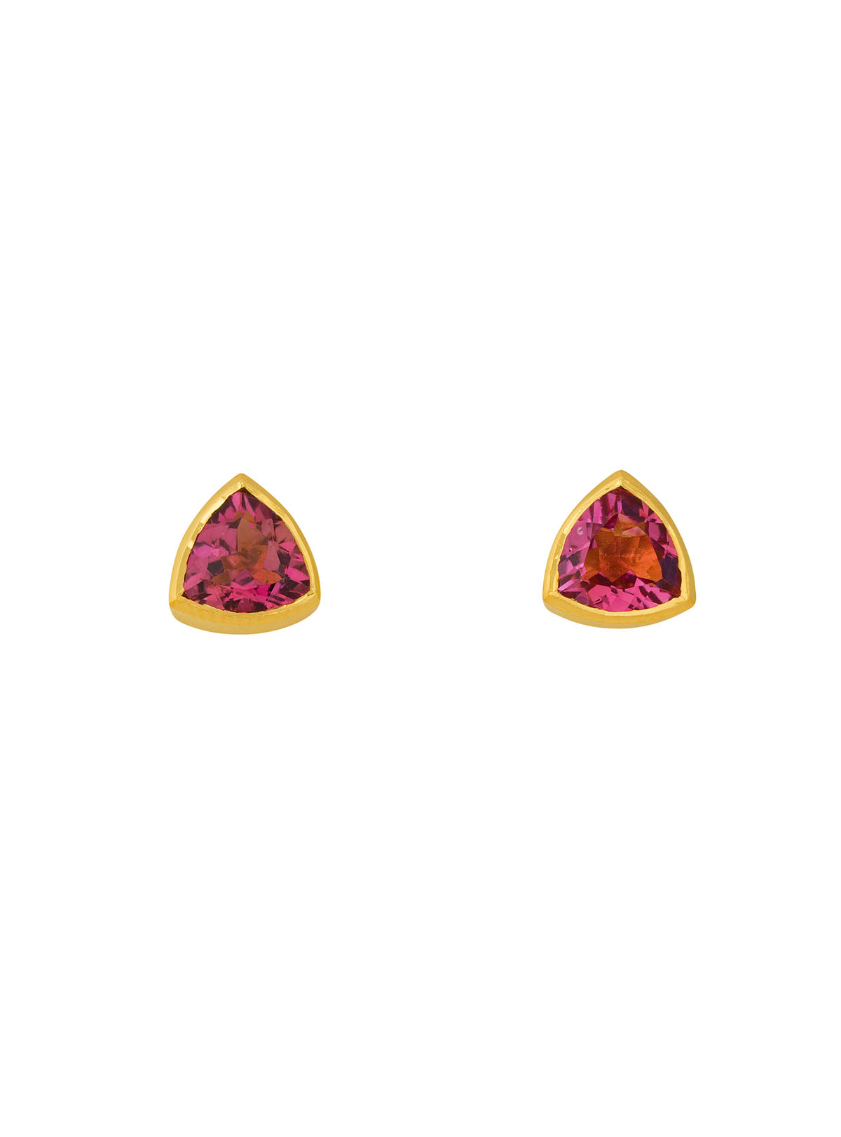 Συμπληρώστε την καθημερινή σας εμφάνιση με αυτά τα αστραφτερά σκουλαρίκια από φυσικές ροζ Τουρμαλίνες. Κατασκευασμένα από κίτρινο χρυσό 18 καρατίων σε ματ φινίρισμα. Αυτά τα σκουλαρίκια διαθέτουν εξαιρετικές ροζ Τουρμαλίνες σε κοπή «trillion» καρφωμένες σε χρυσό ματ καστόνι. Εξαιρετικά τελειωμένα και έτοιμα να φορεθούν ανά πάσα στιγμή. Ασφαλίζουν με πεταλούδες