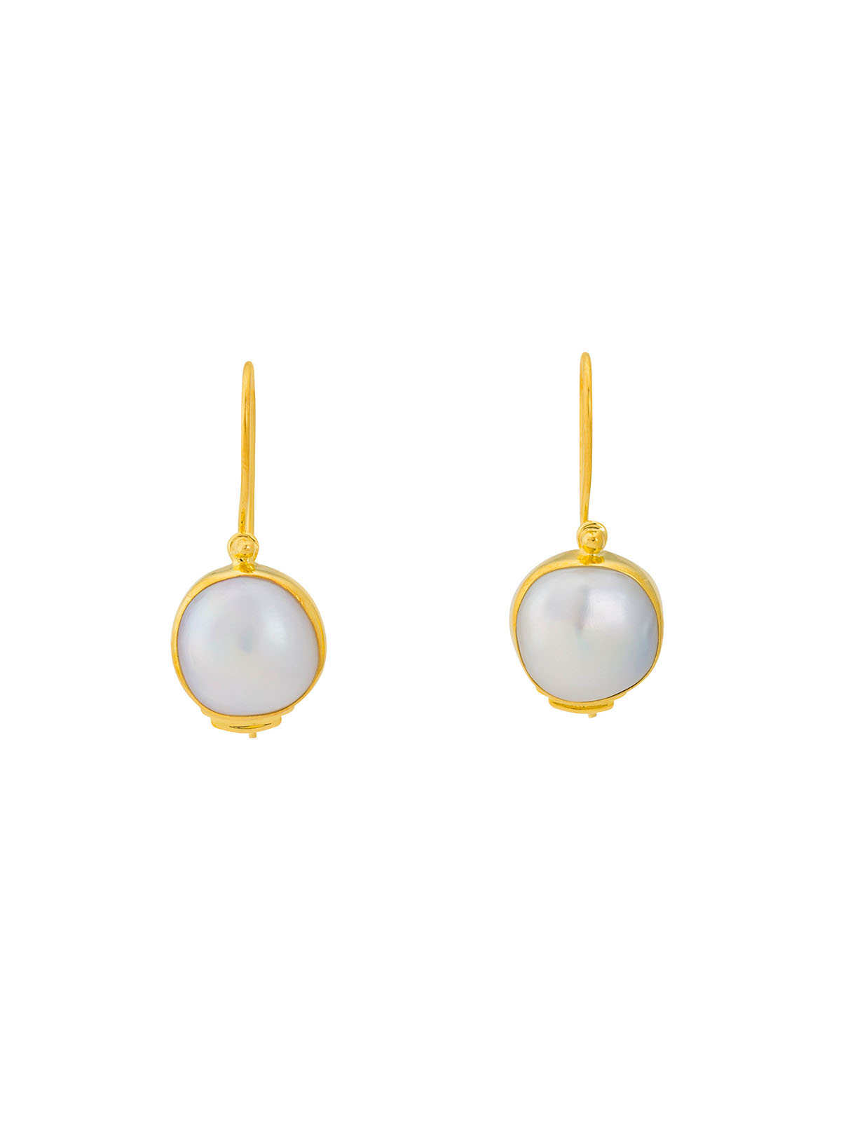Get the drop on the latest style with these gorgeously unique, 18k yellow gold long hook earrings. This handmade earring impeccably crafted in luxurious 18k yellow gold with a polish finish. Feature natural white pearls in the bezel setting are sure to get you noticed on a glamorous night out. You can also wear them to make a statement on a daily basis. Add modern elegance and versatility to your jewelry collection with this earring.