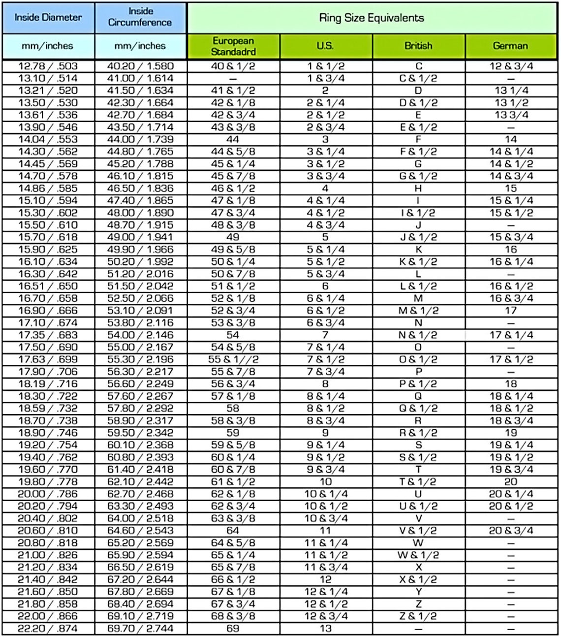 ⚠ ABOUT RING SIZING: There are several sources around the web describing how to measure your finger size but we strongly encourage you to get your finger(s) measured on a professional jewelry shop and then advice our ring size chart to order the correct size for you. There are very small variations between ring sizes and it’s very difficult to correctly measure your finger yourself.